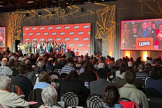 Lewis fundraising lead and front runner status holds into the convention weekend