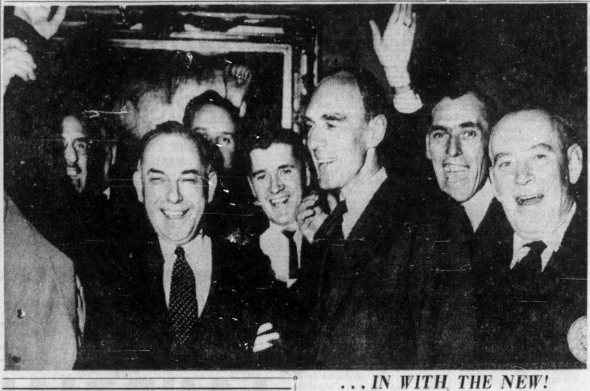 But there wasn’t much separating the Liberals from the Tories in Nova Scotia. Both competed in promising to pave as many highways as possible, but the two parties were separated more by partisan, tribal loyalties than they were by policy. The Co-operative Commonwealth Federation under Michael MacDonald differed more significantly, of course, but was only running a small slate of candidates, primarily in Nova Scotia’s industrial centres.