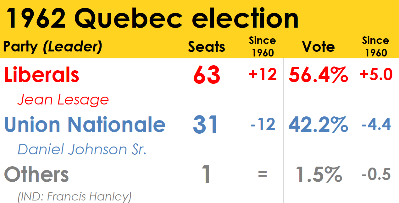 It was quickly apparent, though, that the Union Nationale was not going to be able to do nearly as well again. Polls put its support in single-digits, as Quebec’s politics evolved into the two-party system pitting the sovereigntist Parti Québécois against the federalist Liberals, a dynamic that would define the province’s politics throughout the 1980s, 1990s and into the 2000s.