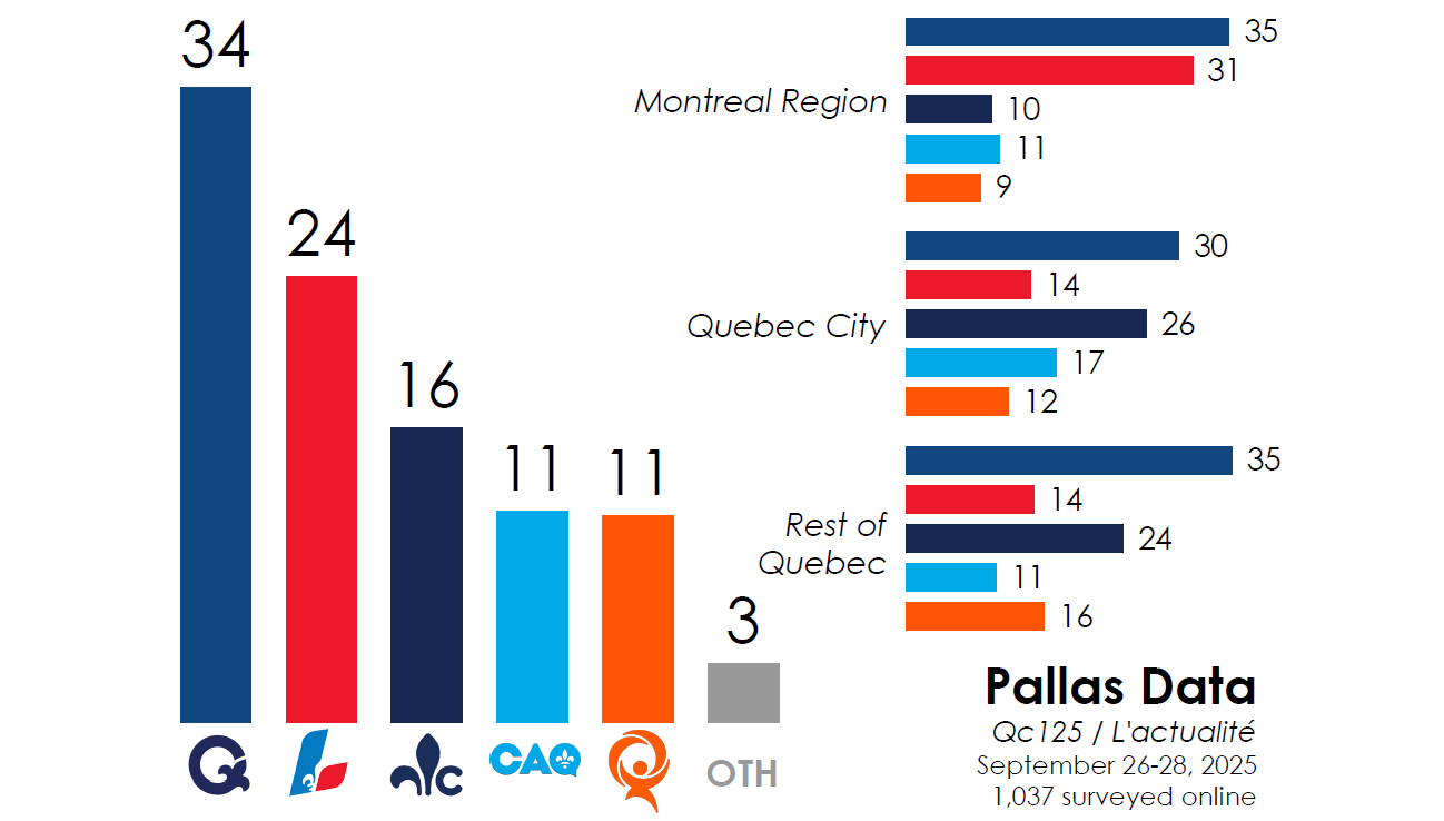 The Pallas poll suggests that Quebecers are not showing any particular enthusiasm for the options on the table. While Legault’s personal ratings were abysmal, none of the other leaders were above water. Conservative leader Éric Duhaime was a net -41, while QS co-leader Ruba Ghazal was a net -26. Charles Milliard, the presumed next leader of the Quebec Liberals, was a net -13. Even Paul St-Pierre Plamondon, whose PQ leads in the polls, was a net -8.