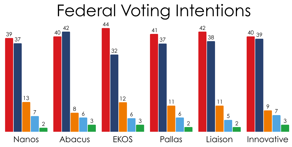 Since it’s been two weeks since the last Weekly Writ, there were a number of polls published since then. And as this newsletter is already a long one, let’s briefly dive right into these polls by Abacus Data, EKOS Research, Innovative Research Group, Liaison Strategies, Nanos Research and Pallas Data.