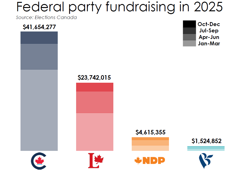 The Liberals’ fundraising for 2025 is at $23.7 million. This sets a new record, beating the $21.7 million that was raised in 2015. With another three months of fundraising left in the year, the Liberals will push that record even further before the end of 2025.